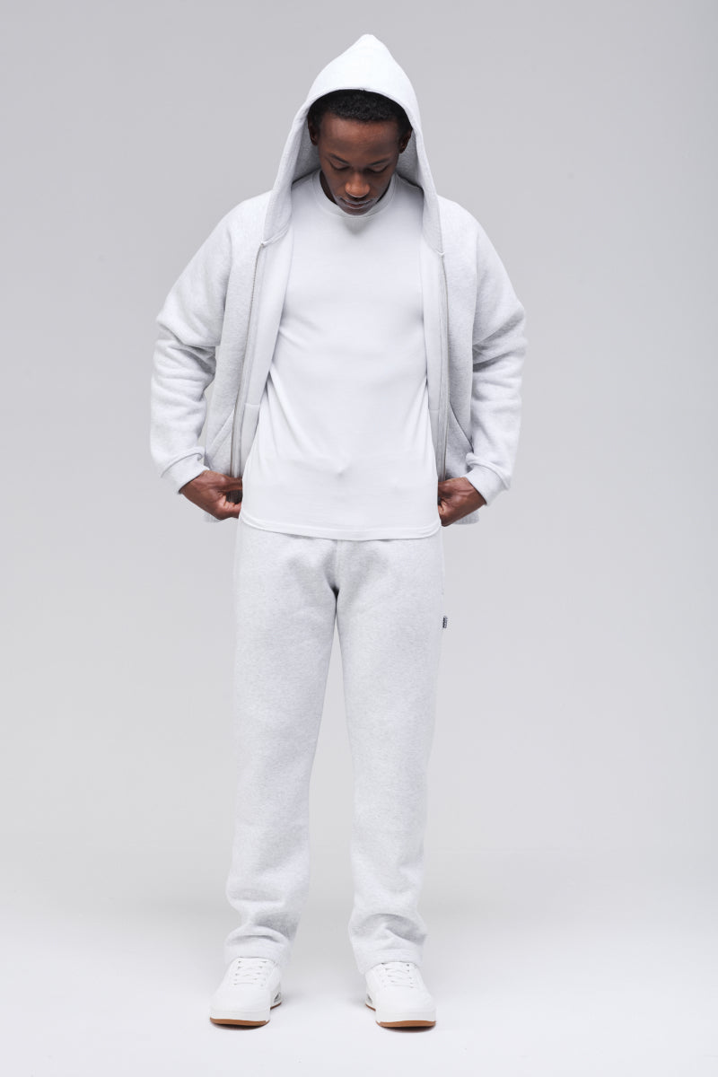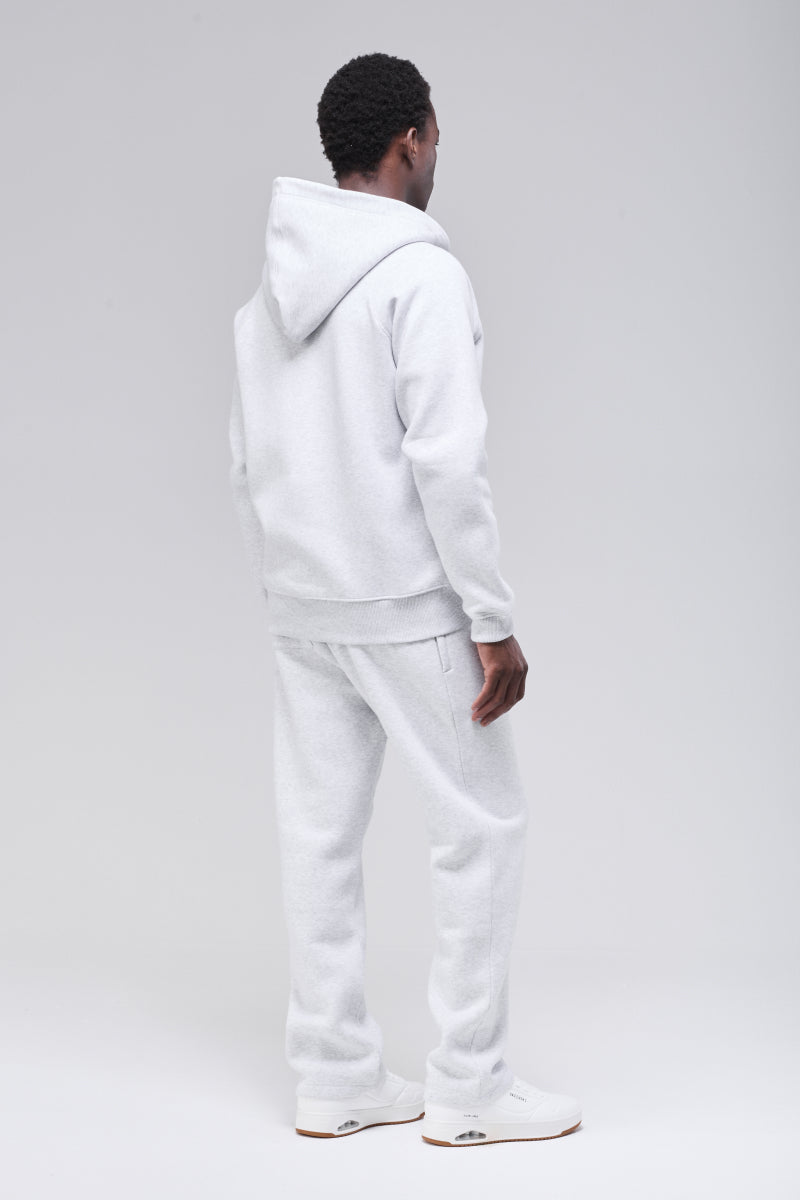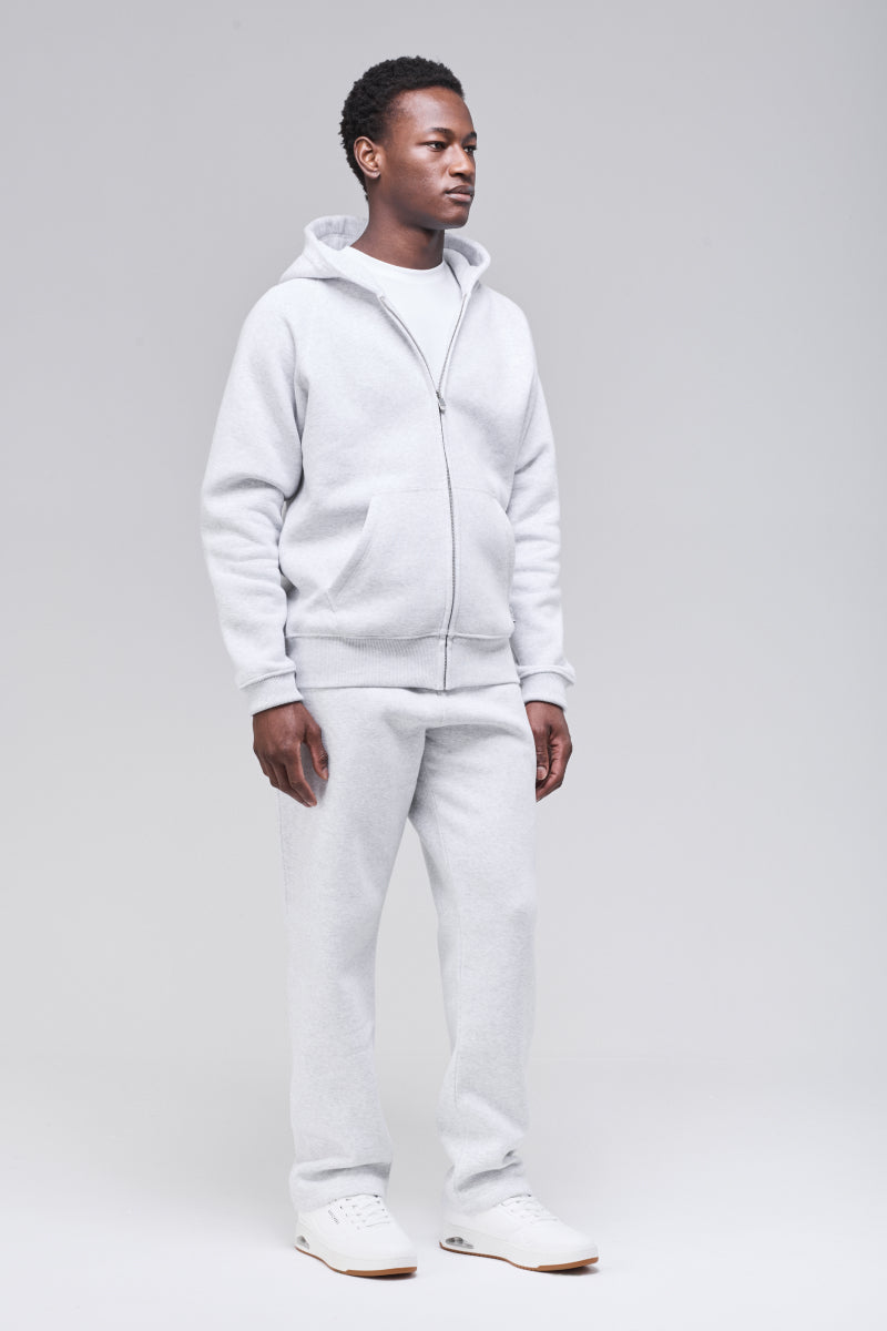 A classic, straight fit zip hoodie in a classic heather grey colorway. Made with a heavyweight cotton blend that fits clean and feels easy.